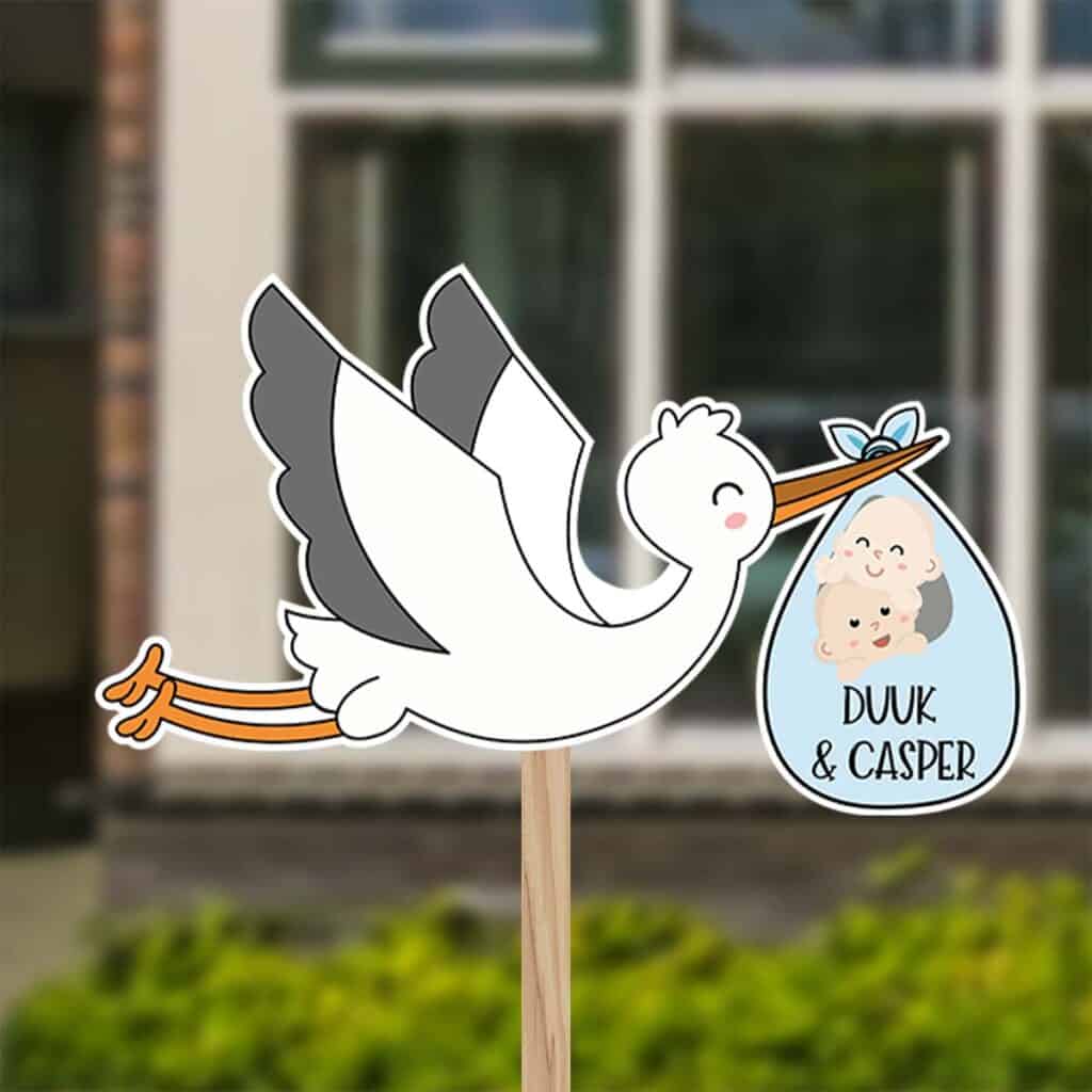 Ben je op zoek naar een leuke ooievaar voor in de tuin? Check hieronder onze populaire ooievaars of bekijk alle ooievaar designs voor in de tuin of check een ander geboortebord met een ander thema!